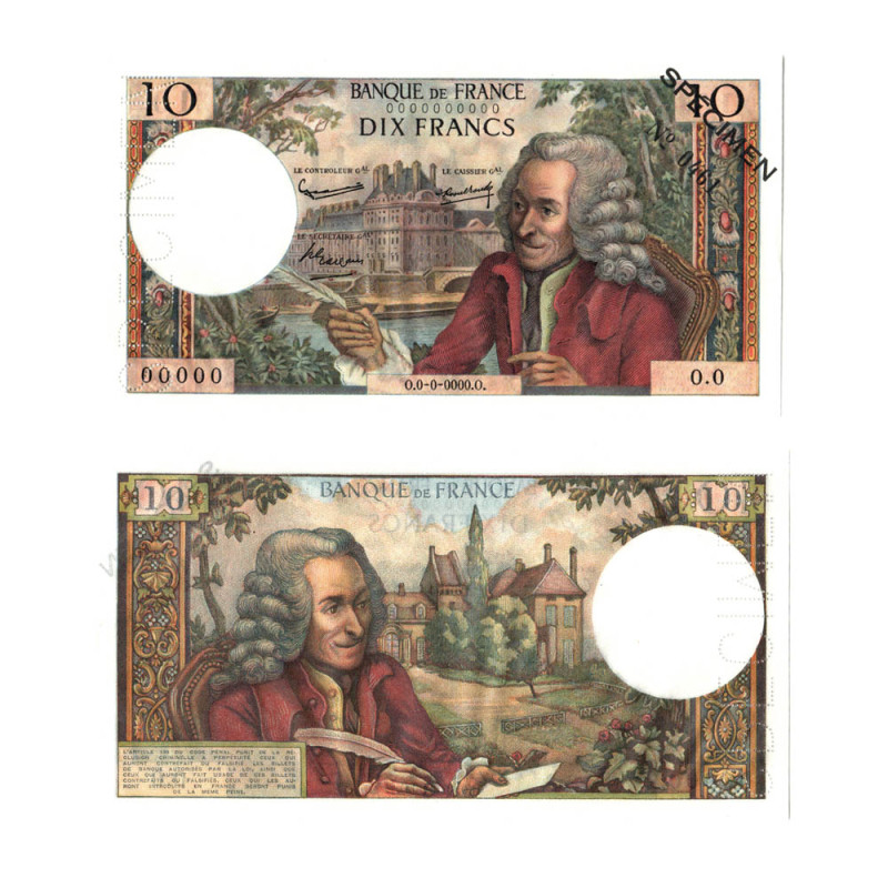 Billet Authentique 10 Francs Voltaire 1963/1973 - Perforé Spécimen