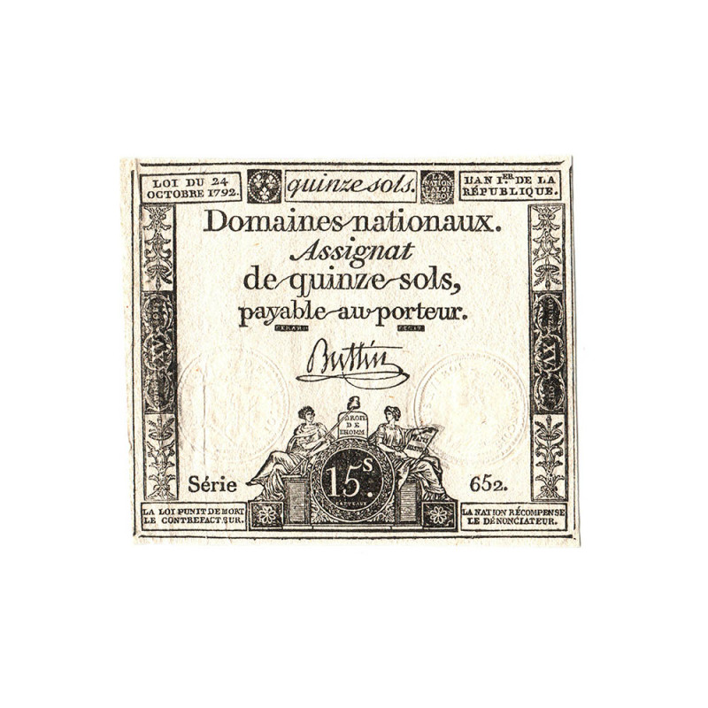 Cet assignat est pour votre patrimoine numismatique le témoignage de cet évènement qui a marqué l’histoire de l’humanité. Vous devez le conserver précieusement.