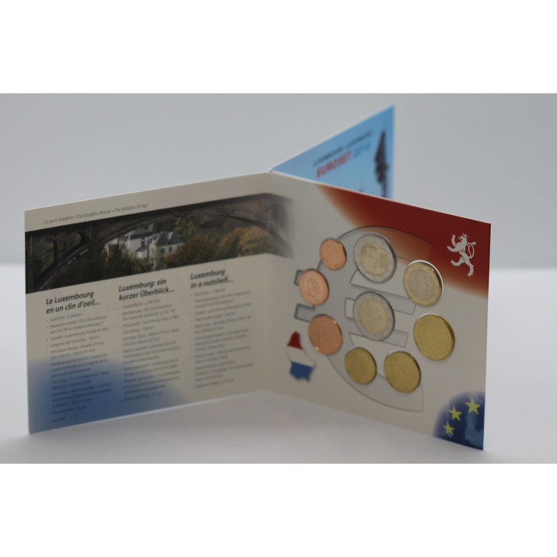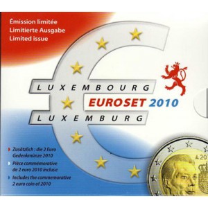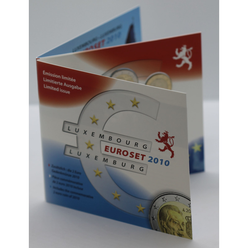 Contient la série de pièces euro millésimées 2010 de 1 cent à 2 euro dont la très recherchée 2 euro commémorative Luxembourg, représentant, en plus du portrait du Grand-Duc Henri, ses armoiries.