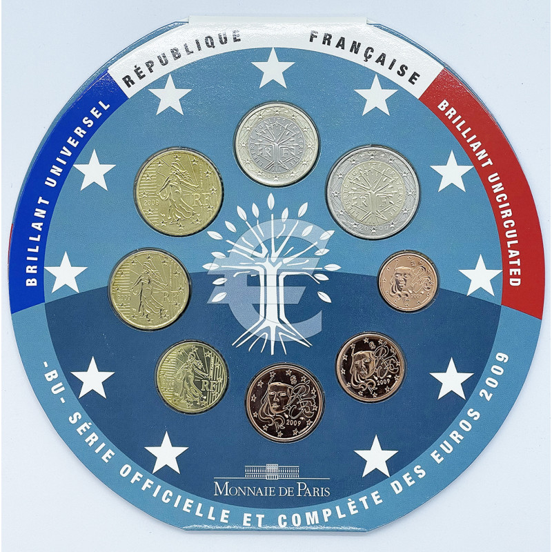 Ce coffret contient la série complète de 1 centime à 2 euros millésimée 2009