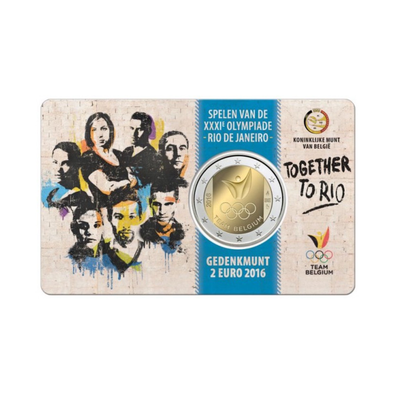 Le thème de cette pièce de 2 euro est le soutien de l'équipe belge à l'occasion des jeux olympiques de Rio.