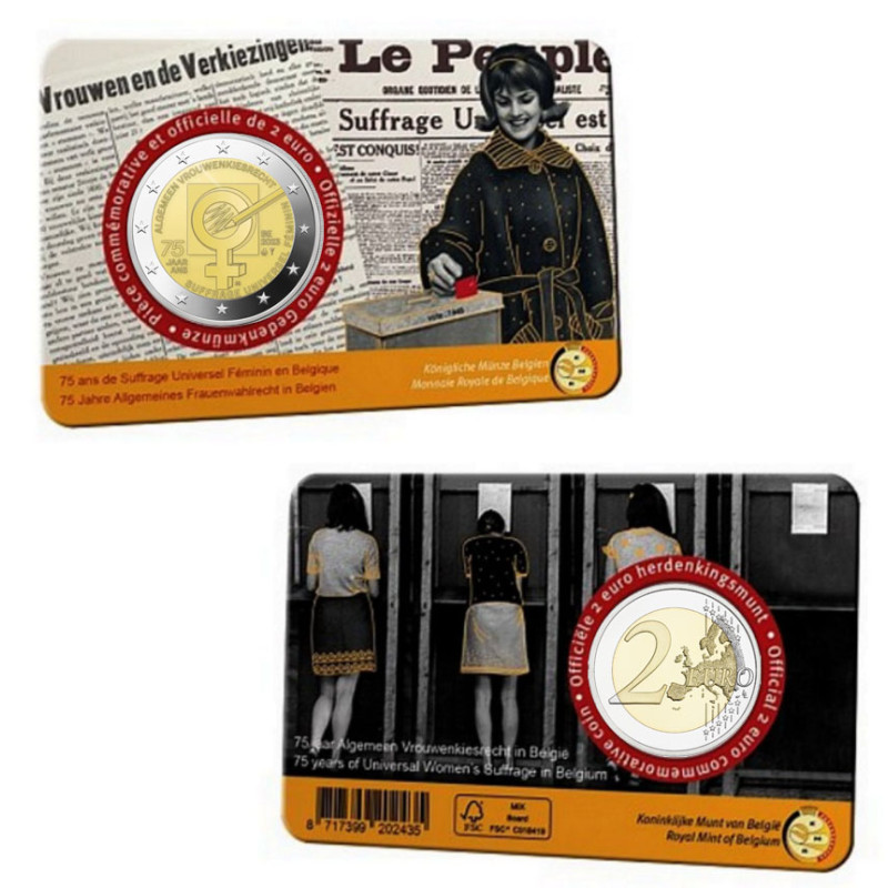 Coincard 2 Euro Commémorative Belgique 2023 sur le thème des 75 ans de suffrage universel des femmes en Belgique