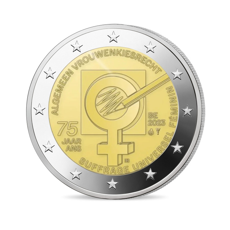 ✔ Pièce incluse : 2€ commémorative Belgique 2023 commémorant les 75 ans de suffrage universel des femmes en Belgique