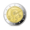 REVERS de la pièce : Le revers de la pièce présente sur sa partie droite une carte de l’Union Européenne qui se prolonge sur la couronne, encadrée par deux groupes de six lignes verticales parallèles, chacune portant une étoile. La signature LL du graveur Luc Luycx se trouve sur la couronne à droite. En guise de légende, le chiffre 2 apparaît à gauche de la carte tandis que le mot EURO est inscrit sur la carte elle-même, avec la quatrième lettre se situant sur la couronne.