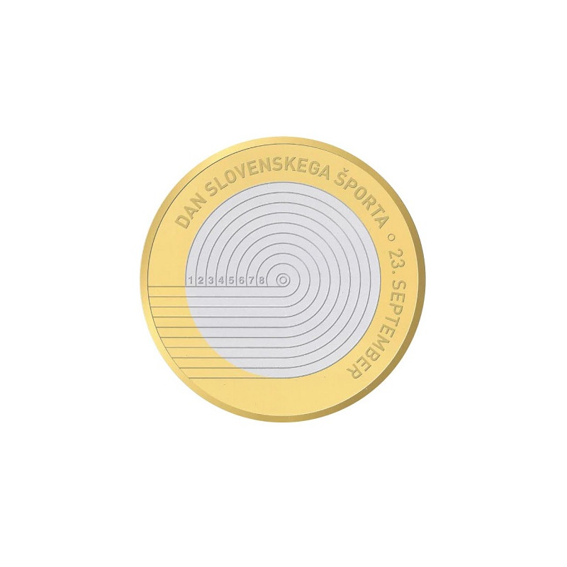 Le revers de la pièce arbore un motif dédié à la Journée du sport slovène, qui se tient le 23 septembre. Il est accompagné de l'inscription "DAN SLOVENSKEGA ŠPORTA º 23. SEPTEMBER", soulignant ainsi la date de cette célébration nationale.