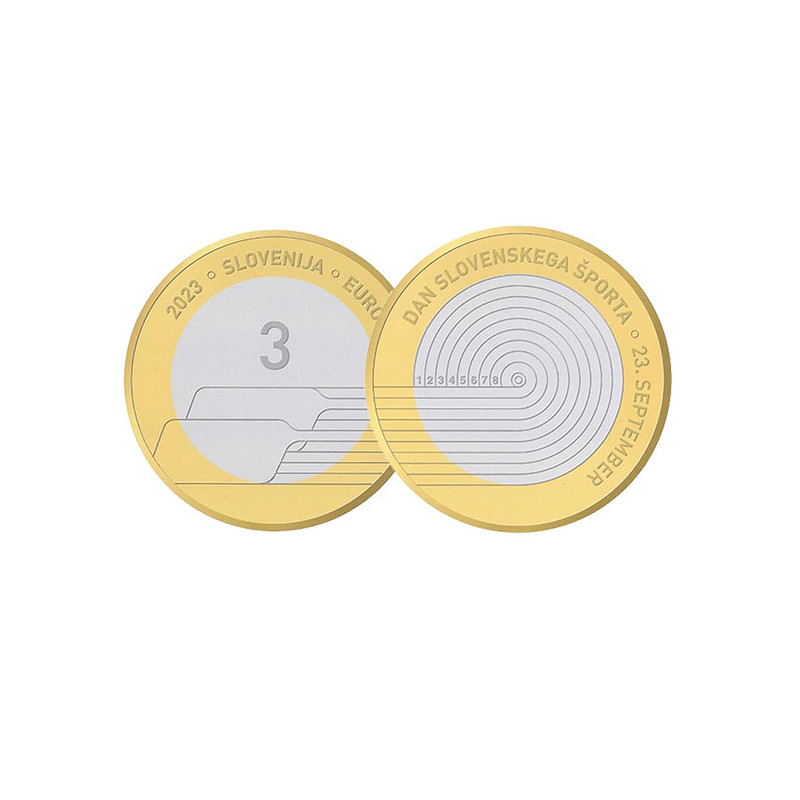 La pièce, d'une valeur nominale de 3 euros, porte l'inscription "SLOVENIJA", traduite en français par "SLOVÉNIE". Elle est datée de 2023. Son design rend hommage à la Journée du sport slovène, reflétant l'importance et la célébration de cette journée dans la culture nationale slovène.