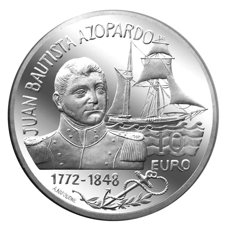 10 euros ARGENT 2023 commémorant le 175e anniversaire de la mort de Juan Bautista Azopardo