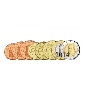 Série euro officielle complète neuve millésimée 2014 des 8 pièces de 1 cent à 2 euro.