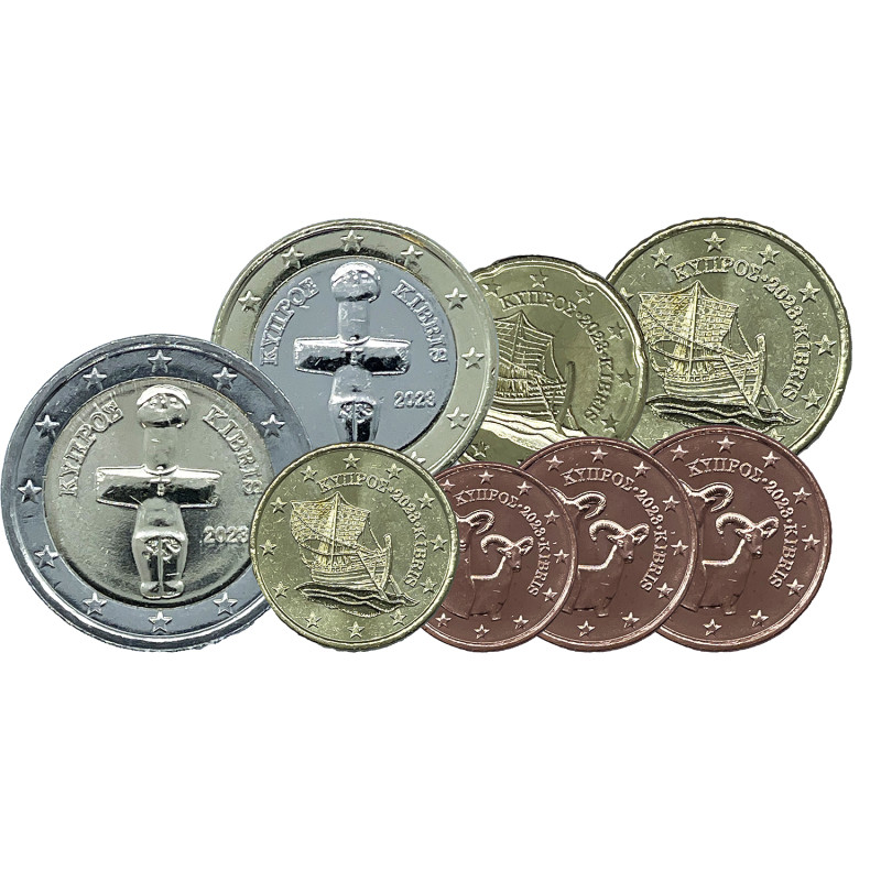 Les pièces chypriotes présentent trois graphismes différents sur la face nationale accompagnée du nom du pays, l’année d’émission et les douze étoiles de l'Union européenne.