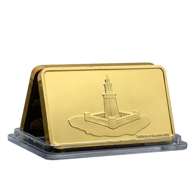 Lingot plaqué Or - 7 merveilles antiques du monde, Phare d'Alexandrie d'Égypte