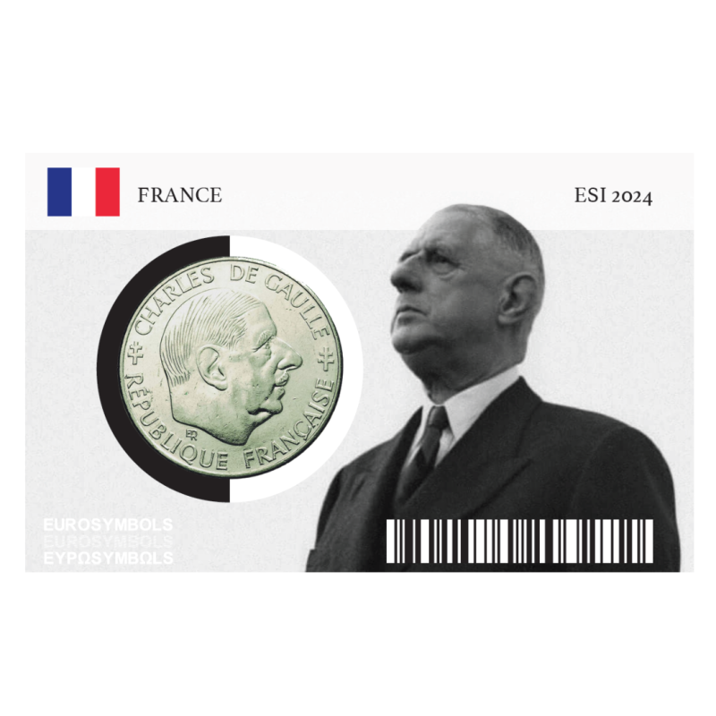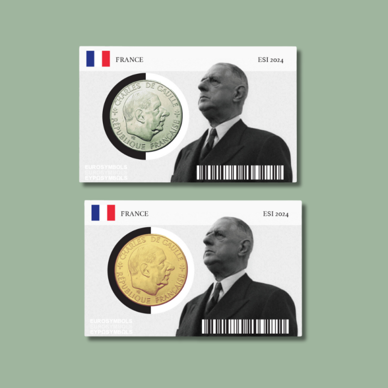 2 Coincards France 2024 1 Franc DEGAULLE + Doré à l'or fin 24 carats - Portrait
