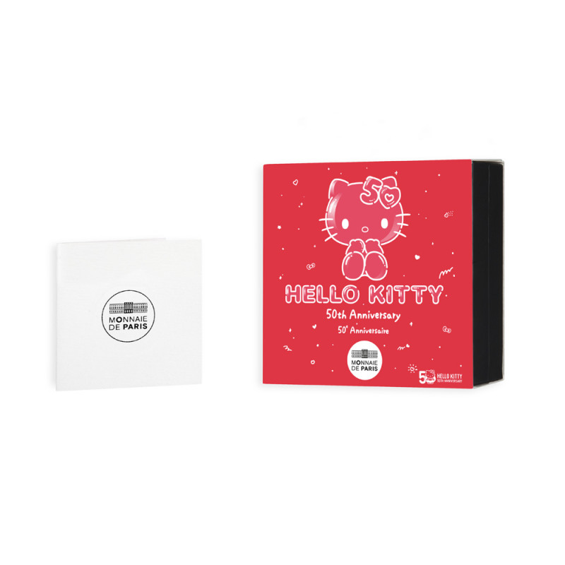 - Hello Kitty est née en 1974. Au fil des ans, elle est devenue l'un des personnages pop les plus uniques et les plus attachants jamais créés, le symbole de la tradition japonaise du kawaii (mignon) et une icône sociale mondiale qui intéresse les femmes de tous âges, de toutes origines ethniques et de tous milieux économiques, ainsi qu'une source d'inspiration pour les artistes et les designers. Grâce aux valeurs de sa marque - bonheur et gentillesse, inclusivité et simplicité - Hello Kitty est aujourd'hui l'une des marques de style de vie les plus cool. Elle est née en 1974 dans la banlieue de Londres et fête son anniversaire le 1er novembre. Elle a un style unique et sa principale signature est un ruban rouge qu'elle porte toujours à l'oreille gauche. Hello Kitty pèse 5 pommes et mesure 3 pommes. Sais-tu quel est le mot préféré de Hello Kitty ? C'est l'amitié ! Comme le dit Hello Kitty, "on n'a jamais trop d'amis !". A l'occasion de son 50ème anniversaire, la Monnaie de Paris rend hommage à cette icône en frappant des monnaies de collection sur le plus adorable des personnages japonais...