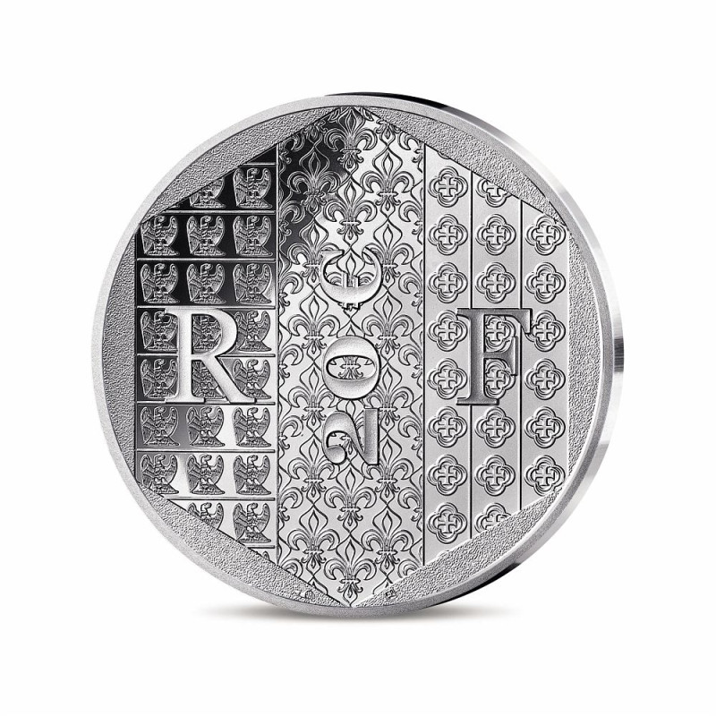 Le revers de cette collection rend hommage aux trois grandes ères historiques françaises. Conçu dans un hexagone, il intègre trois frises graphiques qui réinterprètent avec élégance les symboles du drapeau français sous une forme héraldique.