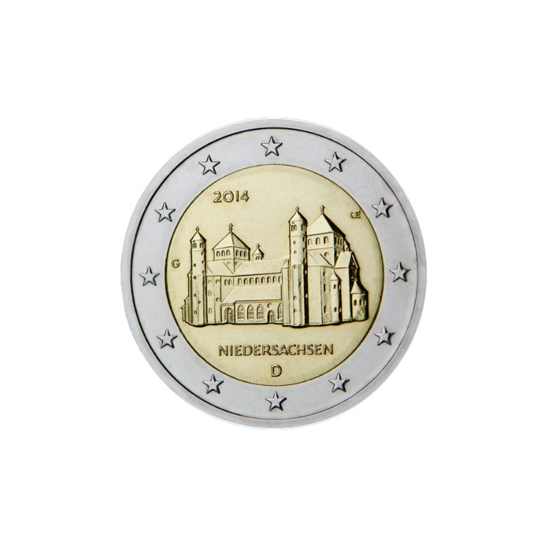 Sur l'avers est représentée l'église Saint Michel, au-dessus de l'inscription "Niedersachsen" (Basse-Saxe en Allemand). Le tout est entouré des douze étoiles du drapeau européen.