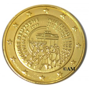 L'Allemagne commémore à travers cette nouvelle monnaie de 2 euro, le 25ème anniversaire de la Réunification Allemande.