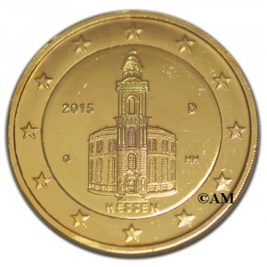 Sur l'avers est représentée l'église Saint Paul de Francfort, au-dessus du nom de la région "Hessen". Le tout est entouré des douze étoiles du drapeau européen.