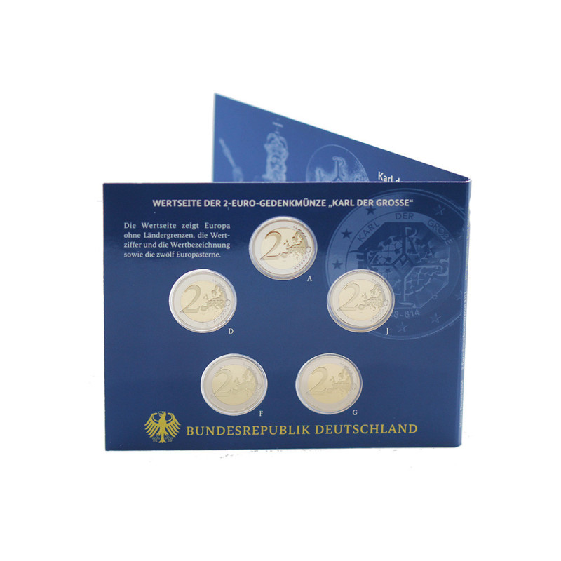 L’Allemagne possède différents ateliers de frappe. Chaque atelier se distingue par une lettre spécifique gravée sur l’avers de la pièce. En règle générale, les collectionneurs possèdent chaque pièce allemande frappée par les cinq ateliers de frappe.