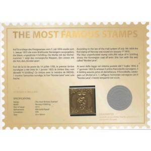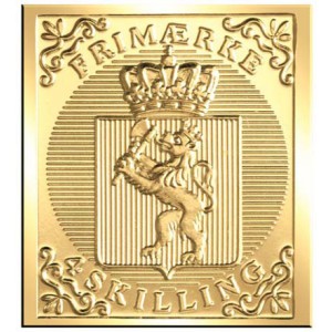 Fort de la loi de poste du 14 juillet 1789, le premier timbre norvégien a été émis le 1er janvier 1855: le timbre bleu non dentelé "4 Schilling". Ce timbre avec le nombre de MICHEL 1 montre l'armoirie de Norvège, le lion "Norske Love" avec une hache.