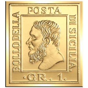 Ce timbre émis en 1859 avec la valeur d'un Grana (hors d'usage en 1861) appartient aux rarités philatéliques de la Sicile. Actuellement, il est évalué à 18 000 euro dans le catalogue Michel.