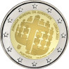 Le revers de la pièce présente sur sa partie droite une carte de l’Union Européenne qui se prolonge sur la couronne, encadrée par deux groupes de six lignes verticales parallèles, chacune portant une étoile. La signature LL du graveur Luc Luycx se trouve sur la couronne à droite. En guise de légende, le chiffre 2 apparaît à gauche de la carte tandis que le mot EURO est inscrit sur la carte elle-même, avec la quatrième lettre se situant sur la couronne.