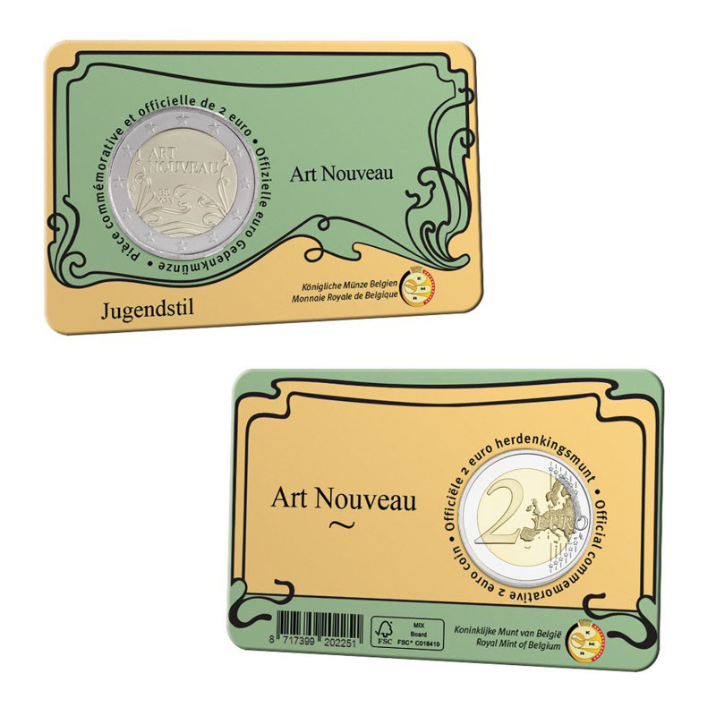 L'aspect intérieur de la pièce arbore une illustration en hommage à l'Art Nouveau belge. Les initiales de l'artiste graveuse, Iris Bruijns, sont visibles sur le côté droit de la pièce. Le code "BE" du pays d'émission et l'année "2023" de l'émission de la pièce sont inscrits sur la partie inférieure. Etant donné que la Monnaie royale des Pays-Bas est responsable de la frappe des pièces, on retrouve aussi la marque de l'atelier d'Utrecht, un bâton de mercure, et les armoiries de la ville d'Herzele, qui est la marque de fabrique.