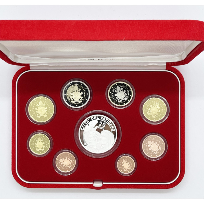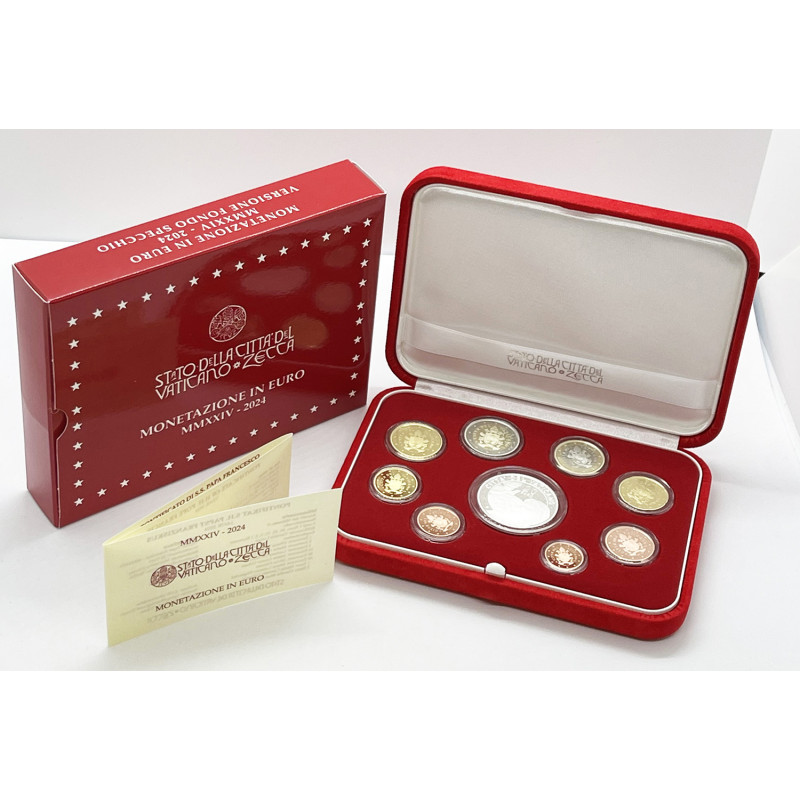 - Cette série Vatican en coffret annuel regroupe les huit coupures de monnaie en euros au millésime 2024 + la pièce de 20 euros Médisance, frappées en qualité BE (Belle Epreuve).